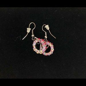 Earrings have red rhinestones around center