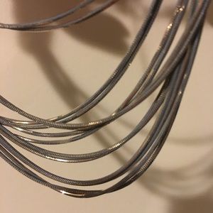 So pretty. This multi-strand painted brass snake chain is easily dressed up or down. Gray and gold. Unlike the stock image the color is more gray than white. Other colors in other listings. Don’t forget to bundle and save!