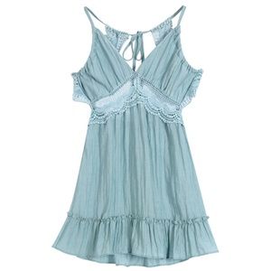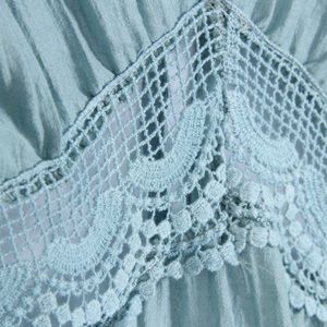 You will instantly fall in love with the I'm Smitten Blue Boho Halter Mini Dress! Adjustable straps tie atop a crochet, open back, while gauzy sheer rayon falls to a plunging V-neck. Crochet lace waist tops the flirty skirt with an elasticized back. Last photos are the actual product.