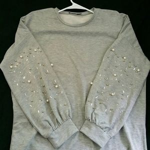 Boyfriend fit , loose fit , embellished bell sleeve.