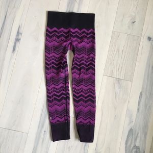Thick, compression intarsia knit cropped leggings from Lulu. Bright purple and black chevron pattern. Size 4.
