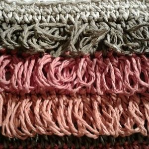 Medium size, lightweight, fringe & colorful Raffia purse. Strap drop 9 1/2", Bag Depth 7", Bag Length 10". Tan, Green and Orange. Zipper closure with inside pocket.