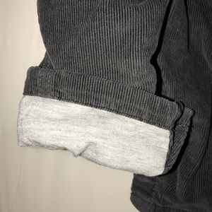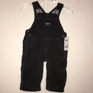 Dark gray corduroy lined boys overalls.