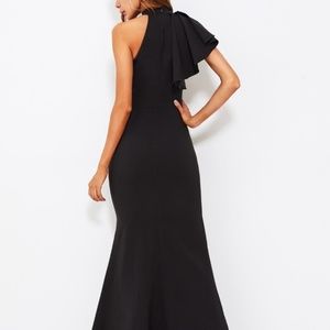 Make a statement in this solid black maxi party dress! With a one sided flounce shoulder and fishtail design it is sure to be the life of the party. Gourgeous sheath silhouette.