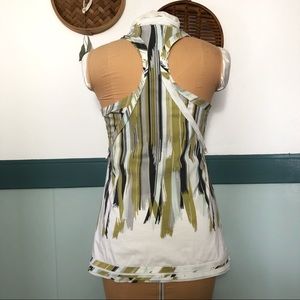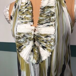 BCBG Max ruffled summer work top green, grey, blue
