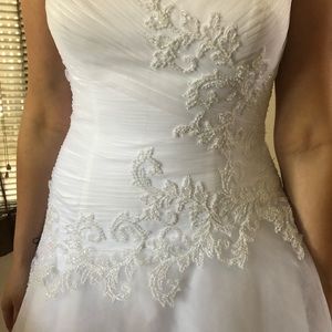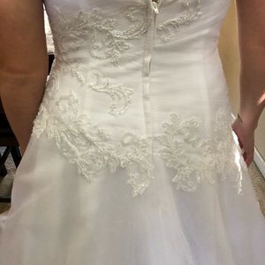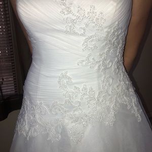 Beautiful Wedding Gown. Women’s Size 12. (David’s Bridal sizes run small, I’m normally an 8) Has some normal wear and needs to be cleaned and steamed. Price is Negotiable. Best Offer