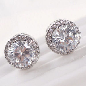 Brand new, quality Women's Crystal 925 Silver Plated Halo Stud Earrings! Size: 10mm