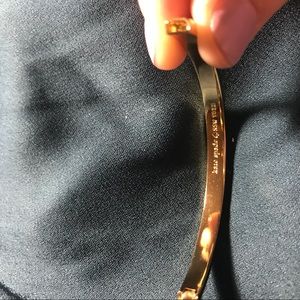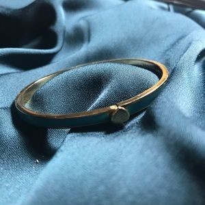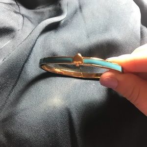 Never been worn perfect condition blue Kate Spade bangle. 12k gold plated mixed metal, approx 2.5 inches diameter. Engraving inside “Kate Spade New York” bright blue