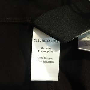 These are not electric yoga. Please know the difference. These badboys are so comfy and stylish. They are made in the U.S.A. Los Angeles. 90 percent cotton, and ladies 10 percent spandex. OMG!!! Upgrade your workout or yoga gear with this hot brand. Please refer to pics. Have questions, I'm here.