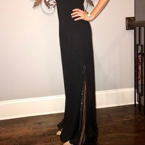 Has built in cups for support. . Both sides of dress have slits with sparkles and black mesh.