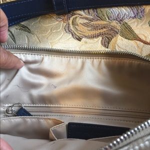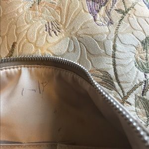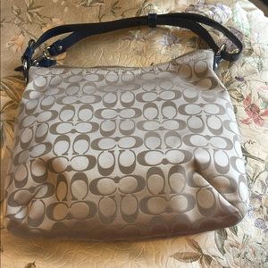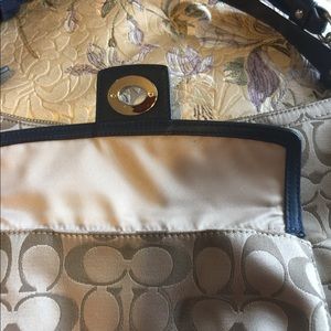 Coach Penelope Signature Sateen Convertible Handbag. Beautiful condition except for ink marks as shown. Patent leather trim and exterior in excellent condition.