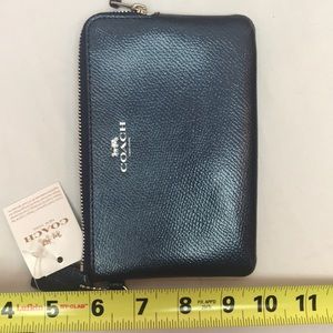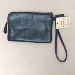 Coach Women's Wristlet Purse Leather Zipper Blue