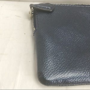Coach Women's Wristlet Coin Purse ID Credit Card Holder Leather Zipper Navy Blue