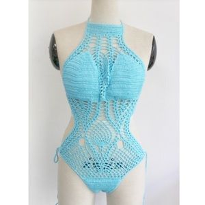 Hippie Hooray Baby Blue Crochet Lace One Piece/Monokini Swimsuit will bring out your inner flower child! Featuring cuts to show off all your sexy curves, and cheeky bottoms. Actual product in last two photos, last photo represents the color best. Adjustable straps cross atop an open back. Black also available.