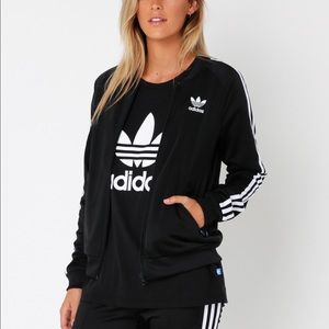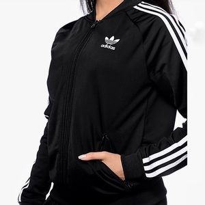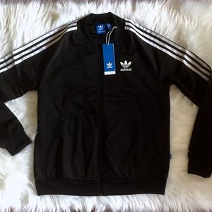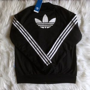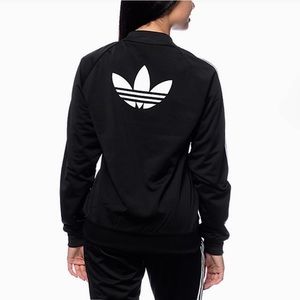 Experience comfort and style every time you wear the adidas® Originals Women’s Trefoil Track Jacket. Smooth, shiny material brings a lightweight, sleek feel, while a ribbed hemline and wrist cuffs keep your look snugly in place. A large trefoil adidas® back logo graphic brings bold fashion, and front zipper pockets secure your small personal essentials. Feel authentic, athletic, and unstoppable with the adidas® Originals Track Jacket.