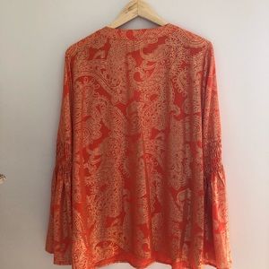 Beautiful orange blouse with bell sleeves just perfect for spring and summer