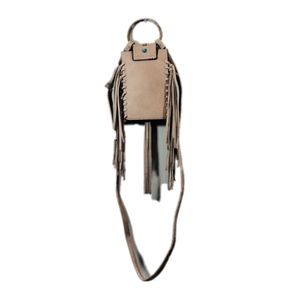 Mudd Taupe Boho Fringe Cell Crossbody Bag