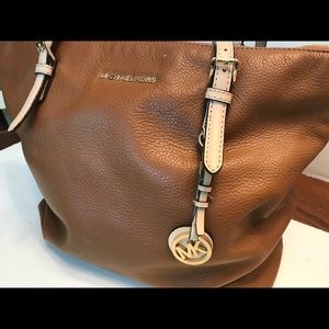 Carmel/Shoulder bag with 21 inch adjustable flesh tone strap. Has pencil point size spot above Michael Kors emblem.