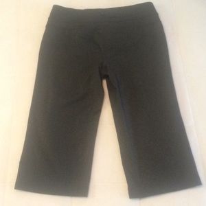 Prana straight-fit dark grey capri leggings are perfect for casual comfort, athleisure, yoga or the gym.