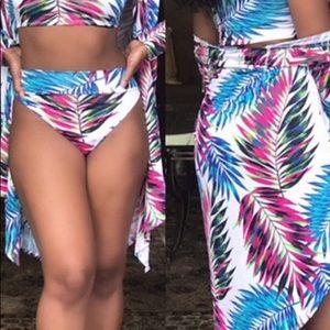 Get an early start to your summer with this sexy swimsuit! Brand New!! Included is the top, bottom and Coverup. Model is wearing a size Large.