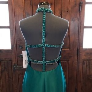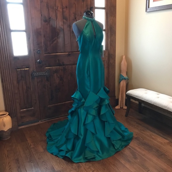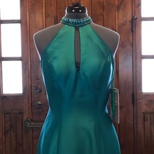 Brand new with tags! This dress is fit for a QUEEN! The color is emerald green, but it definitely has a teal blue hint to it as well!