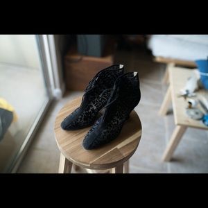 Vintage Yves Saint Laurent Boho Hippy Burnout Black Velvet and Sheer Paisley Floral Lace Up Ankle Booties Boots Size 6! Stevie Nicks prolly had a pair of these.