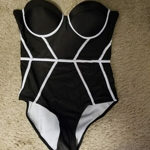 BLACK AND WHITE VINTAGE MONIKINI SWIMSUIT