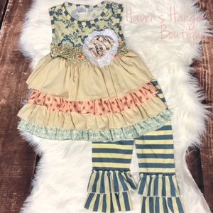 2pc. Layered Ruffle Floral & Stripe Top & Pants #1