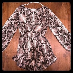 Worn once, long sleeve snake skin romper. Ruffle detailing on bottom.