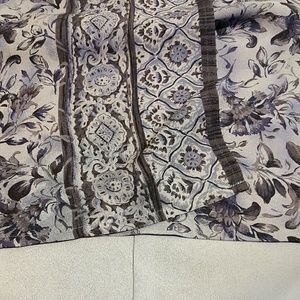 Beautiful lined straight skirt has a border design that compliments the front, soft, lightweight silk, hidden zipper, no pockets. Very sheek.