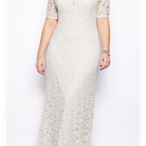 The Spring Party Dress of your Dreams. This Lace Jacquard Backless Scoop Neck has Short Sleeve Maxi Dress With V Back.