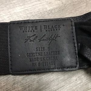 Leather and elastic belt with snap closure in the back. Flower worn to the side off center.
