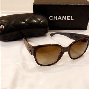 Selling my authentic Chanel Polarized Tweed Sunglasses. Purchased from the Chanel Boutique in Las Vegas. This is from the Tweed Collection. Dark Havana Frame, Brown Polarized Lenses, Brown Tweed Fabric with CC Logo on both sides. Made in Italy. Comes with original Sunglass Case, Box and Chanel Cleaning Cloth. Lenses have scratches from wear but can only see them up close. Please observe photos. If it bothers you, it can easily be replaced. Purchased for $520.