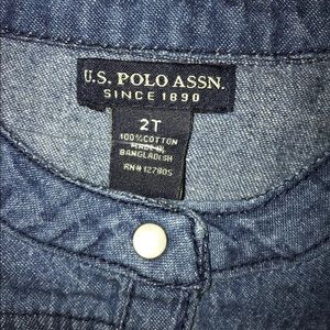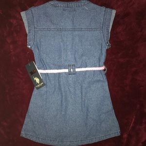 Adorable new with tags U.S Polo Assn toddler girl demon dress with pink waist rope. In perfect new condition, soft material.