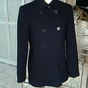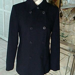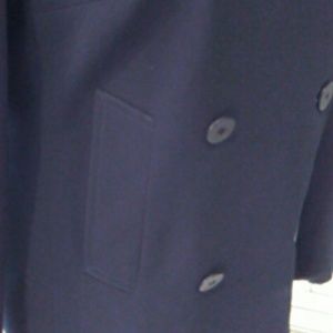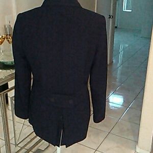 Double Breasted Navy Blue Blazer with 2 Rolls of Buttons. Blazer has a Pleat in Back with a Button Closure. Blazer also has Two Front Pockets. Stunning Blazer That You Can Dress Up or Down!