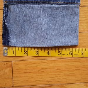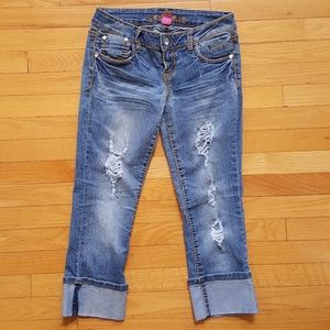 Almost Famous Destructed Capri Cuffed Junior Blue Jeans Size 7 | Factory Distressed No Stains