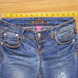 Almost Famous Destructed Junior Blue Jeans Size 7