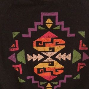 Super comfy & barley worn this Aztec print long sleeve tee has vibrant colors on the front screen & plain on the back....detail cuff at waist and writs....crewneck...