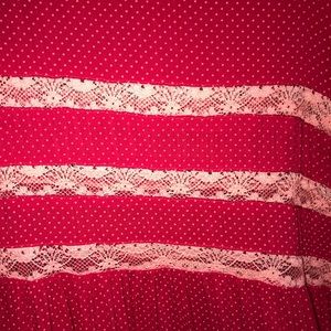 Cherry combo, bright red woth coral or pink lace.