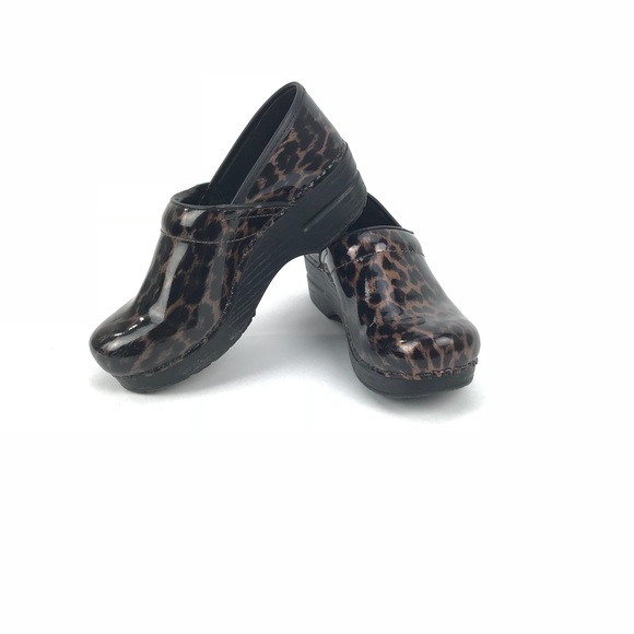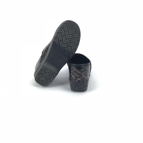 Pre-owned Dansko patent leather leopard print woman’s clogs. Woman’s sz 38. See pictures for condition. Some basic signs of wear