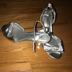 Silver, metallic heels. Size 8. Worn once for a wedding. Great condition.
