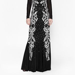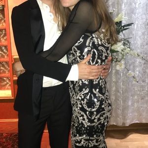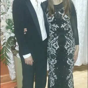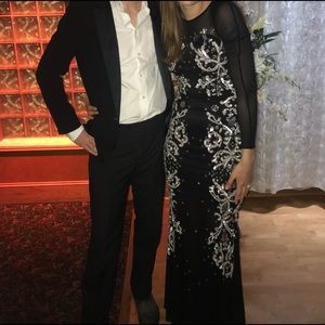 Gorgeous French Connection BEADED SEQUIN MAXI DRESS / Gown in Black/Silver