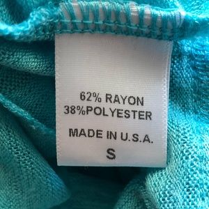 Spring things up with this beautiful Robin's Egg blue top! Beautiful lace detail around the bottom edge. Super soft and comfy. Material is slightly sheer but is modest and does not need a cami underneath. Size is marked as Small, but I would say it can fit medium. Depends on fit you want. I am 34DD and it fit nicely across bust. EUC