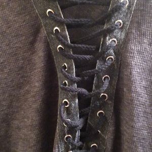 Gray and black lace-up shirt, size M. Fun, trendy, perfect for a night out!