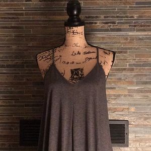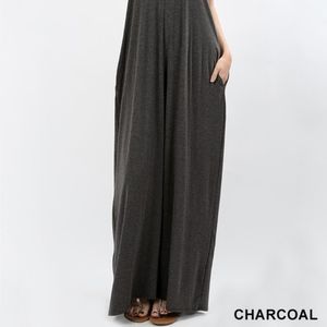 Charcoal Gray Cami Dress Spaghetti Strap Pockets Maxi Dress.