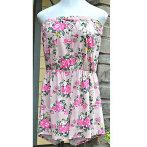 ◇ Feminine florals and a sassy cutout are featured in this knit romper. Colors: Dusty pink, mauve, pink, light green, dark green. Strapless elasticized neckline. Front cross strap cutout. Elasticized waist. Allover floral print. Knit construction. Super soft fabric.