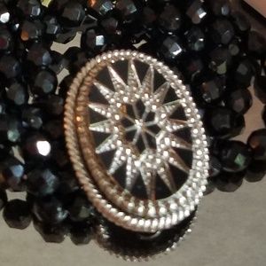 This gorgeous black beaded bracelet with crystal encrusted medallion is great for black tie events or dressing up jeans. NWT.