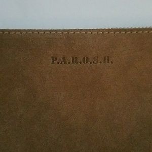 Beautiful 100% leather suede. Purchased in Milan. Only used once. Zipper keeps everything safe and wristlet makes it easy to carry. Great way to dress up a jeans and tee shirt outfit or to accent a boho dress.