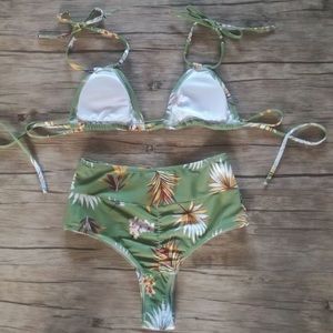 This Sage Floral Swimsuit is soooo cute, Two Pieces high waist, wear it and have a cool summer.🌻🌻Time to have fun in the pool😍😍95%Polyester, 5% Spandex.