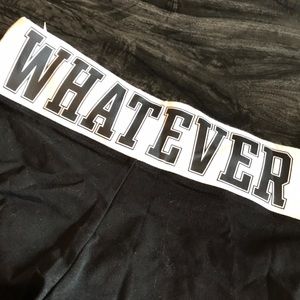 BNWT VS PINK CROPPED YOGA LEGGINGS size medium cropped length black with white waistband has PINK written in the front and WHATEVER across the back in black on the waistband has hidden pocket in front I DO Not Trade swill price drop all prices discussed through offer option rude comments will be blocked will not answer What is your lowest?